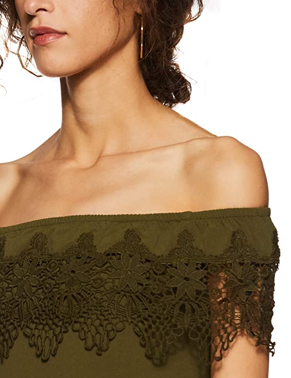 Vero Moda Women Red Lace Short Sleeve Off Shoulder Top