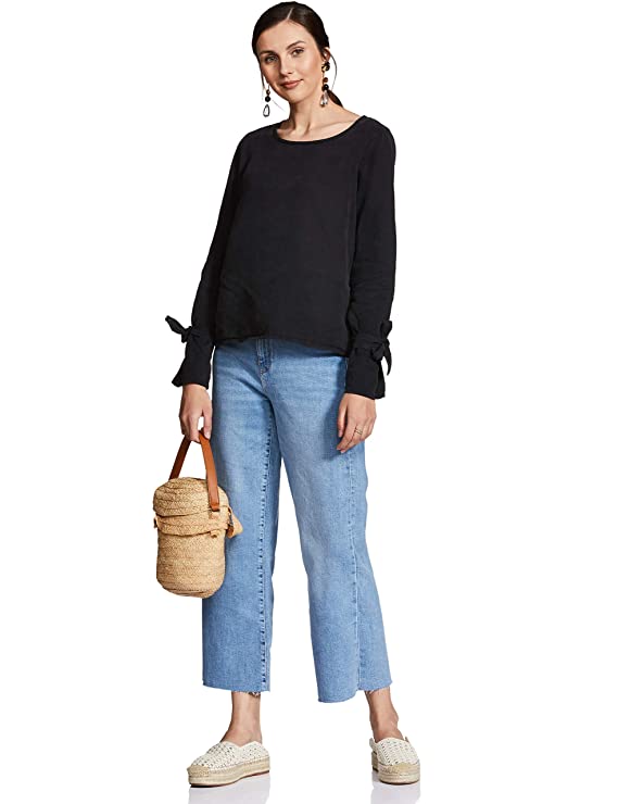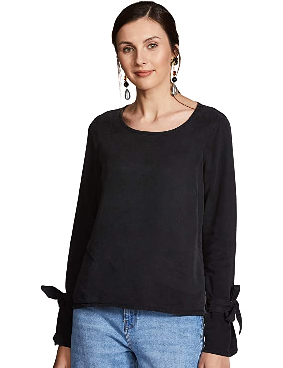 Vero Moda Women Black Solid Long Sleeve Round Neck Top